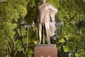 上海南京路尽头的陈毅广场,新中国第一任上海市市长陈毅的塑像昂然矗立。陈毅塑像坐北朝南,用青铜浇注,高5.6米,底座用红色磨光花岗石砌
